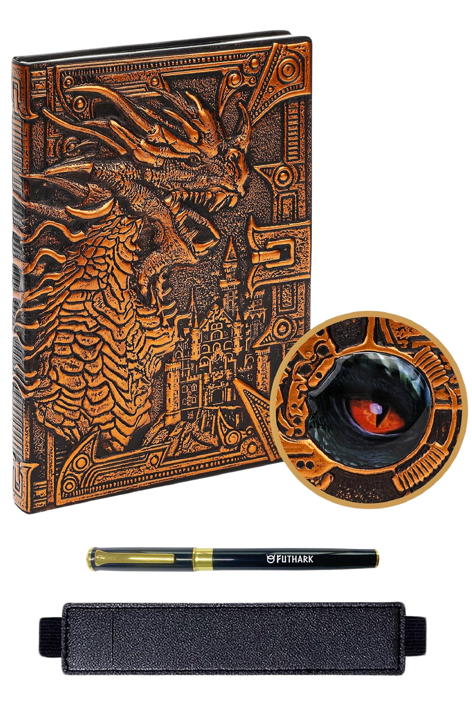 DND Notebook/Journal - 200 Pages with 3D Bronze Dragon including Pen & Pen Holder